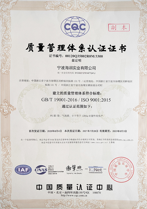 公司已通過ISO9001質(zhì)量管理體系及《安全生產(chǎn)目標(biāo)管理》的相關(guān)認(rèn)證,嚴(yán)格進(jìn)行品質(zhì)管理,采用一系列先進(jìn)設(shè)備對產(chǎn)品進(jìn)行管控,為客戶提供質(zhì)量穩(wěn)定的合格產(chǎn)品,公司所有產(chǎn)品都已通過GP檢測,其環(huán)保方面均符合國際標(biāo)準(zhǔn)。